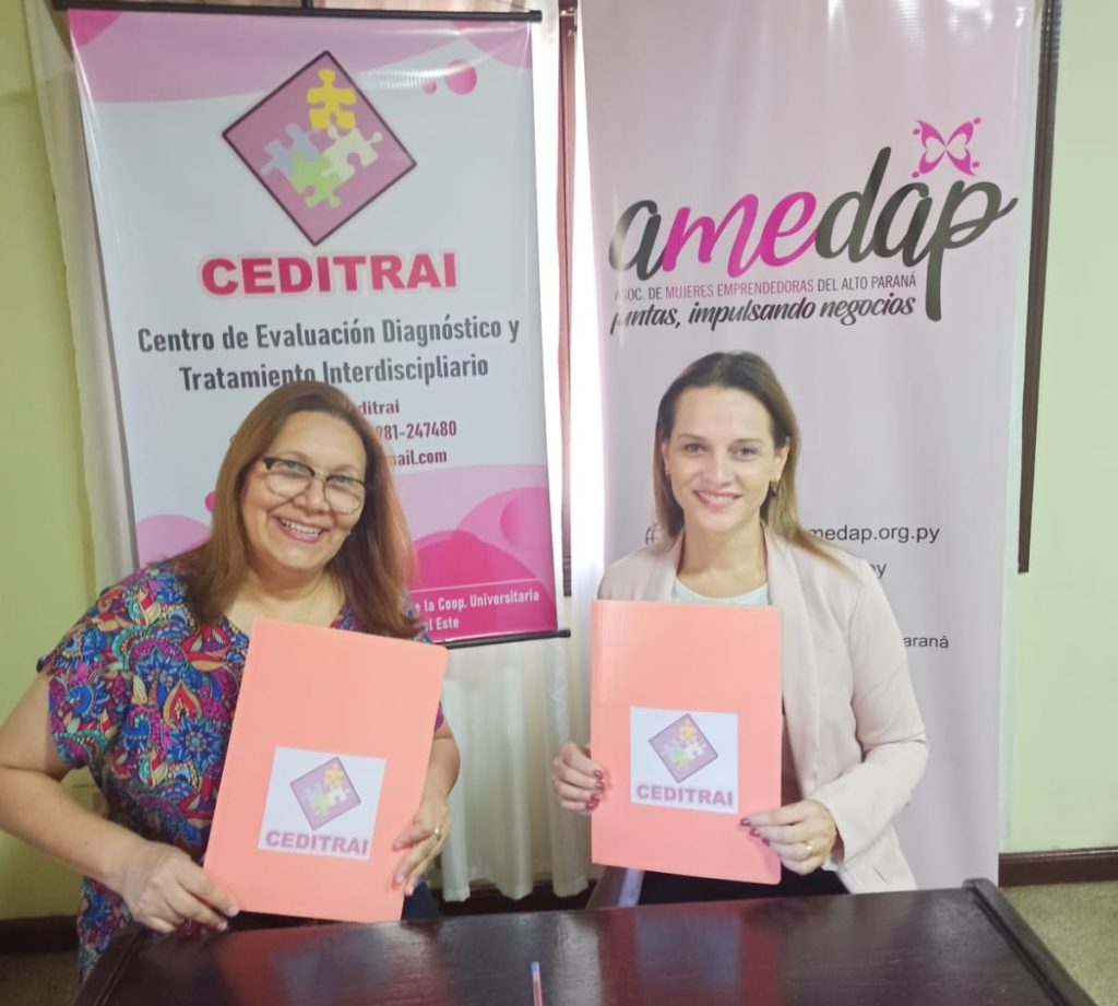 El día de hoy, jueves 21 de abril la Asociación de mujeres emprendedoras del Alto Paraná (AMEDAP) ha firmado un Convenio de Cooperación Interinstitucional con el Centro de Evaluación, Diagnóstico y Tratamiento Interdisciplinario, CEDITRAI.